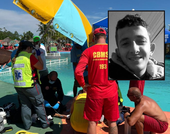 CBMSC/Divulgação/Folha Regional Um homem de 27 anos, identificado como Pablo César Machado, morreu afogado após cair em piscina no Caverá Country Park, em Araranguá, nesta quinta-feira, dia 15.