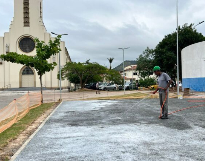A praça revitalizada deve ser entregue em breve à comunidade.