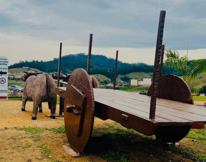Segundo o prefeito, a escultura valoriza o trabalho no campo e dialoga com a história da colonização italiana, quando o carro de boi era o principal meio de transporte para o escoamento da produção. “É uma homenagem ao nosso agricultor, protagonista da economia local até hoje”, afirmou.