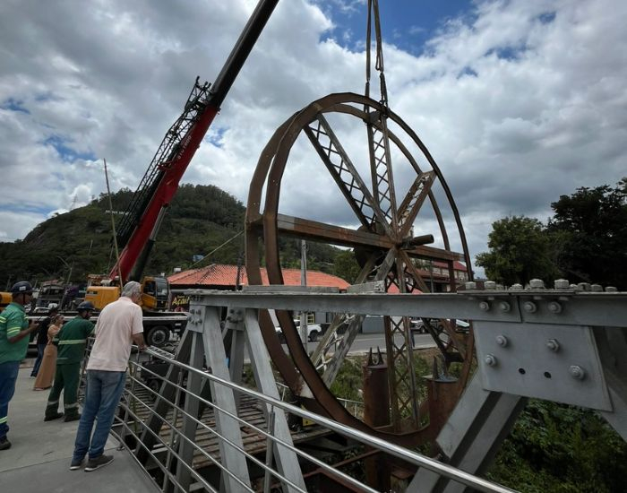 “Hoje nós estamos aqui no centro da nossa cidade para mais um dia importante, estamos alocando aqui a nossa roda d’água construída inteiramente com aço da Ponte Hercílio Luz”, afirmou o prefeito durante a instalação.