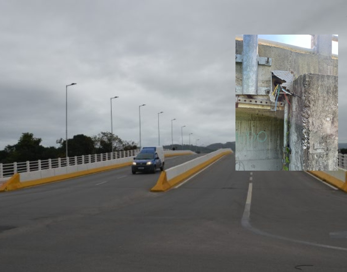 O sistema de iluminação da Ponte Prefeito Paulo Osny May, em Tubarão, não está funcionando. Ao averiguar as causas da falha na manhã desta quinta-feira, dia 1º, descobriu-se que parte da fiação elétrica foi furtada.