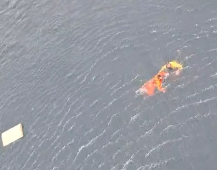 Divulgação/Folha Regional Um homem de 35 anos foi salvo de um naufrágio ao se agarrar a uma porta de geladeira em alto-mar. Ele foi resgatado nesta terça-feira, dia 13, pela guarnição de operações aéreas do Águia 01 da PMSC, em São Francisco do Sul.