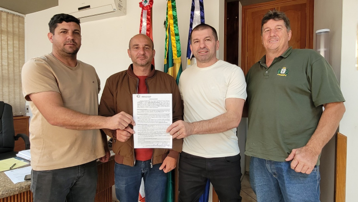 Na ocasião, estiveram presentes o representante da empresa, Giliardz Gonçalves, o Secretário de Obras, Jebinho Burato, e do Secretário de Agricultura, Claudecir Burato.
