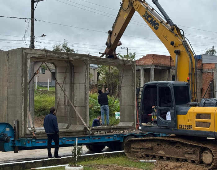 No local, já chegaram as 10 aduelas de concreto, cada uma medindo 3 metros de largura por 3 metros de altura, que farão parte da estrutura. A base da ponte será totalmente em concreto e, após a conclusão, a via receberá pavimentação com lajotas.