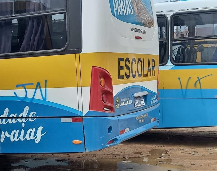 Conforme a nota, alguns ônibus do transporte escolar foram alvo de invasão, pichação e danos internos, além do prédio da rodoviária municipal, que também foi vandalizado.