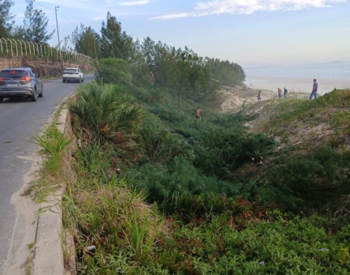 “A atividade de supressão das espécies exóticas, mais precisamente a casuarina, o foco da nossa ação, se dá pelo fato de ela ser uma espécie invasora, que agride a vegetação nativa. Através da supressão da casuarina aqui na Praia do Iró a gente vai poder potencializar a regeneração das espécies nativas”, destaca Oliveira.