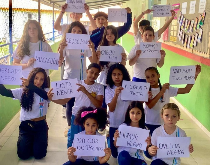 A diretora Jamile da Motta Heleno Antônio, conta que as turmas se reuniram e decidiram transformar essa reflexão em um vídeo forte e objetivo, mostrando placas com termos que historicamente foram usados para ofender pessoas negras.