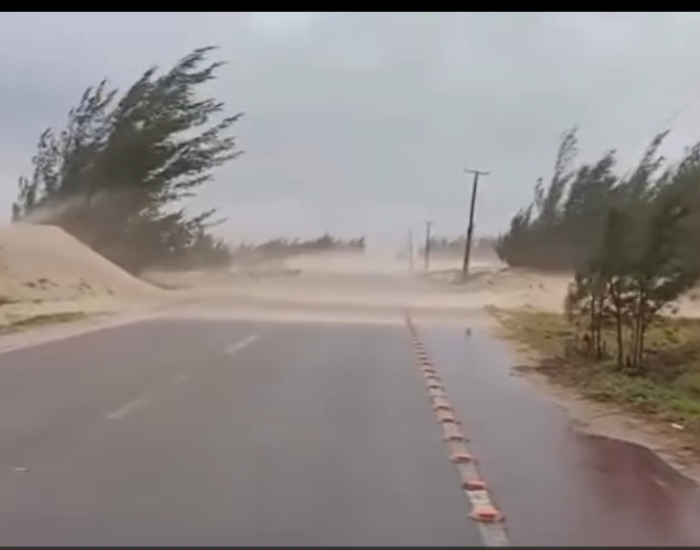 Na região de Laguna, os fortes ventos causaram o acúmulo de areia na SC-100, rodovia de acesso ao Farol de Santa Marta. Morador gravou um vídeo para alertar os motoristas sobre a situação. As equipes da prefeitura iniciaram os trabalhos para desobstrução da pista.