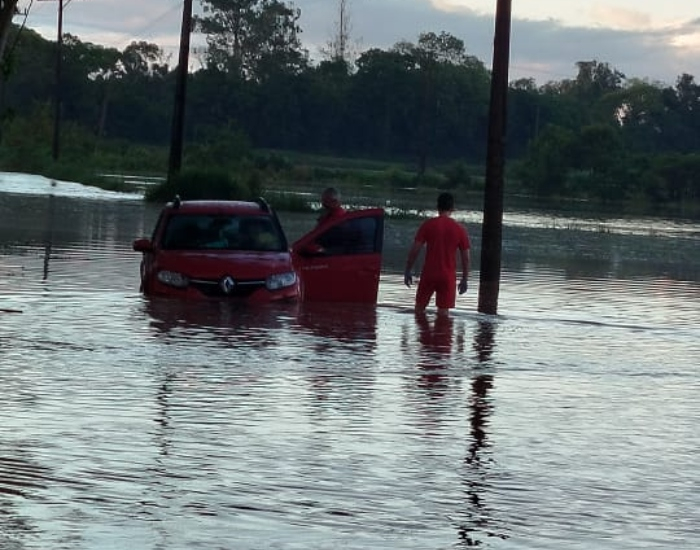 CBMSC/Divulgação/Folha Regional Um senhor de 63 anos teve de ser resgatado após ficar ilhado na manhã deste sábado, dia 8, no município de Turvo. O rio no bairro Itoupava II transbordou após chuvas intensas, deixando o veículo ilhado no meio da estrada.