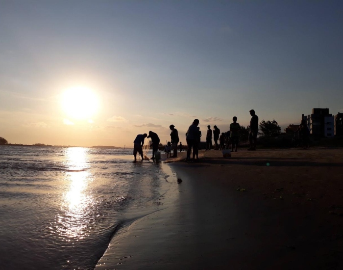 O mar permanece muito agitado com ondas de leste/nordeste entre 2,0 e 2,5m e picos de 3,0m de Florianópolis ao Litoral Sul, com risco moderado a alto para atividades no mar.