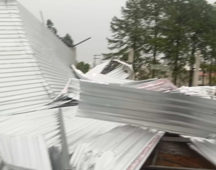 O fenômeno climático também provocou a queda de postes e telhas que atingiram a rede de distribuição de energia. Equipes da Cooperativa Regional Sul de Eletrificação Rural (Coorsel) foram acionadas e trabalham no local para restabelecer o serviço.