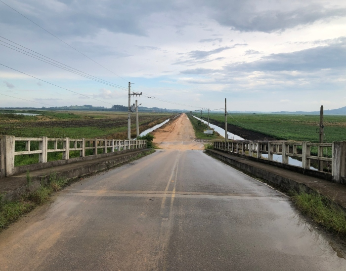 Conforme a prefeitura de Jaguaruna, a concretagem das pontes foi finalizada e a obra segue para a laje de transição. Nesta semana, a empresa Confer, responsável pela pavimentação asfáltica, deve iniciar a terraplanagem do local.