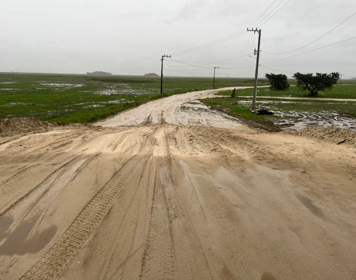 Com a melhora no tempo, a empresa Confer deve retornar para reforçar a terraplanagem como nova camada de material para melhoria do fluxo de veículos pelo local.