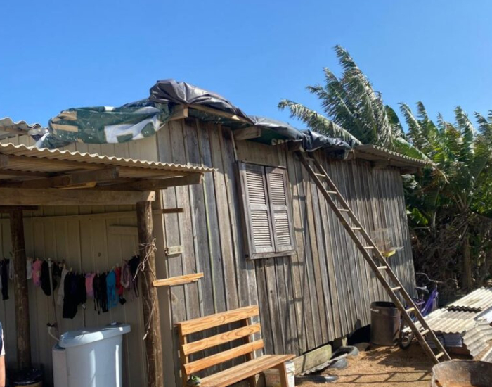 A secretaria distribuiu lonas para os destelhados e prestou assistência às famílias afetadas na comunidade.
