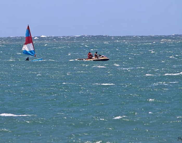 Mark Photo Surf/Divulgação/Folha Regional O Corpo de Bombeiros foi acionado e constatou que se tratava de dois veleiros dingue com quatro tripulantes, sendo que um havia naufragado e o outro em vias de naufragar.