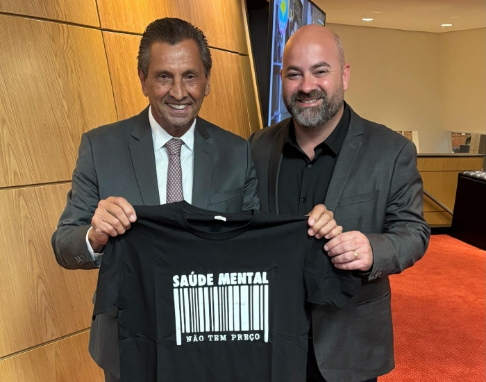 Como símbolo desse compromisso, Everson presenteou o presidente da Alesc com uma camiseta estampada com a sua bandeira: “A saúde mental não tem preço!”.