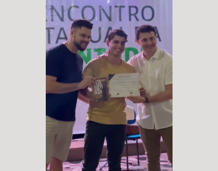 João Vitor recebeu o certificado das mãos do deputado Rafael Pezenti e do presidente nacional da JMDB, Leonardo Resende.