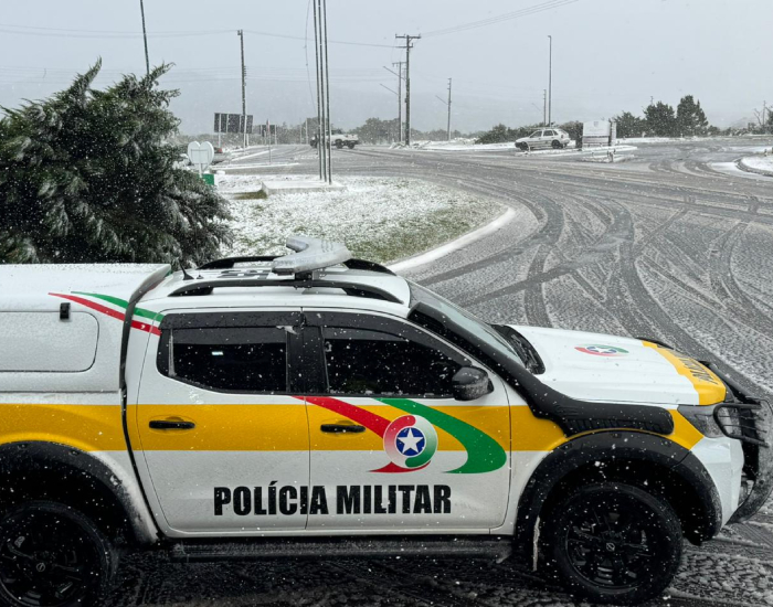 Polícia Militar Rodoviária/Divulgação/Folha Regional A Polícia Militar Rodoviária precisou interditar a Rodovia SC-390, na Serra do Rio do Rastro, na manhã desta quarta-feira, 29, por questões de segurança viária devido à neve na pista. O bloqueio teve início por volta de 9h15.