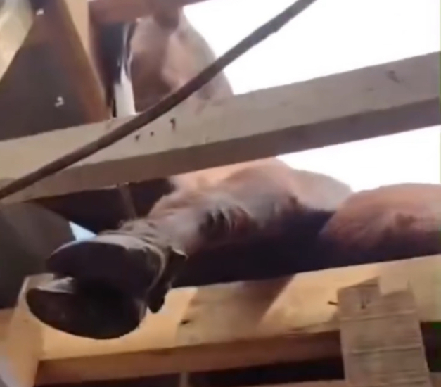 Foto: Reprodução Um caso inusitado ocorreu em Santa Catarina neste sábado (7). Um boi subiu no telhado de uma casa e ficou preso após a estrutura ceder no município de Tangará, no Meio-Oeste.