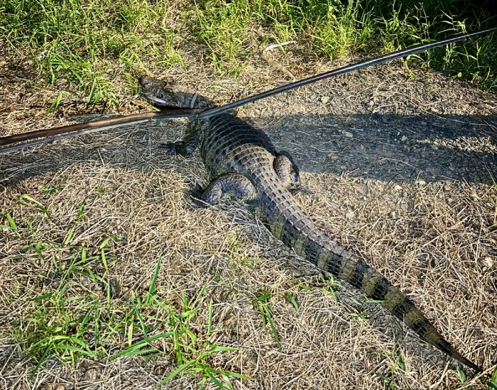 O Corpo de Bombeiros foi acionado, e após gerenciar os riscos, foi efetuada a captura e, utilizando a maca envelope, o jacaré foi transportado e solto em seu habitat natural.