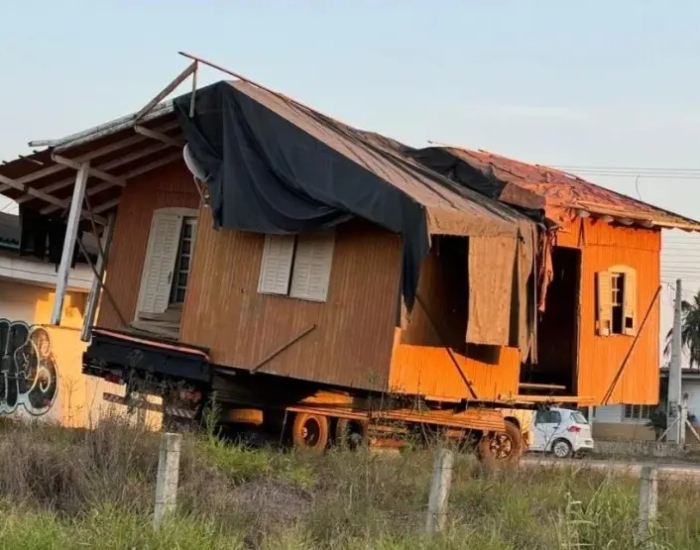 O vídeo de uma casa inteira, de madeira, sendo transportada por um caminhão à beira-mar entre Jaguaruna e Içara tem circulado pelas redes sociais nos últimos dias.