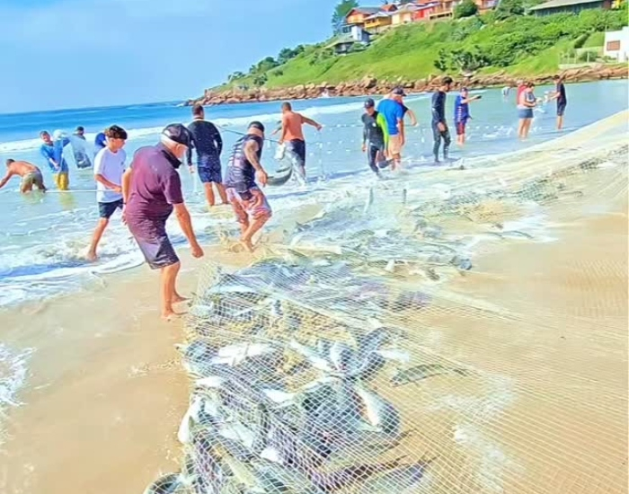 Há poucos dias, pescadores de Jaguaruna também capturaram cerca de uma tonelada do peixe em um dos primeiros cercos no Balneário Arroio Corrente.