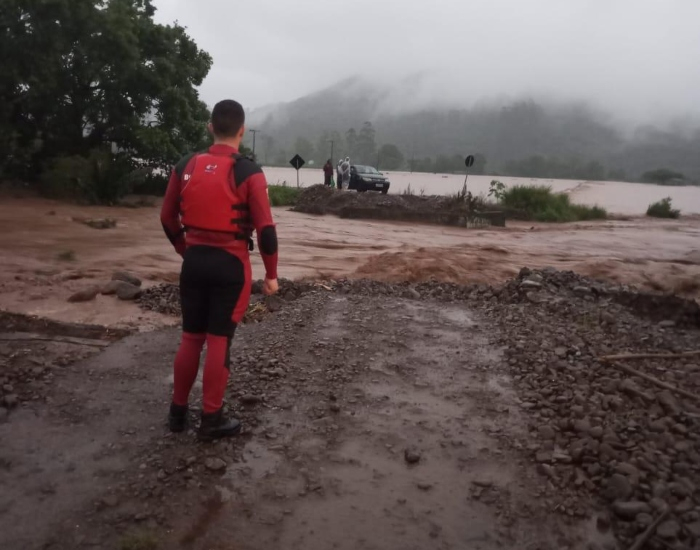 Na região Sul, a chuva deixou comunidades isoladas. Em Jacinto Machado, quatro homens, de 39, 30, 27 e 26 anos, foram resgatados de trator após o veículo em que eles estavam, ficar ilhado em uma cabeceira próximo a uma ponte. A ocorrência aconteceu no bairro Pinheirinho do Meio, por volta das 18h15.
