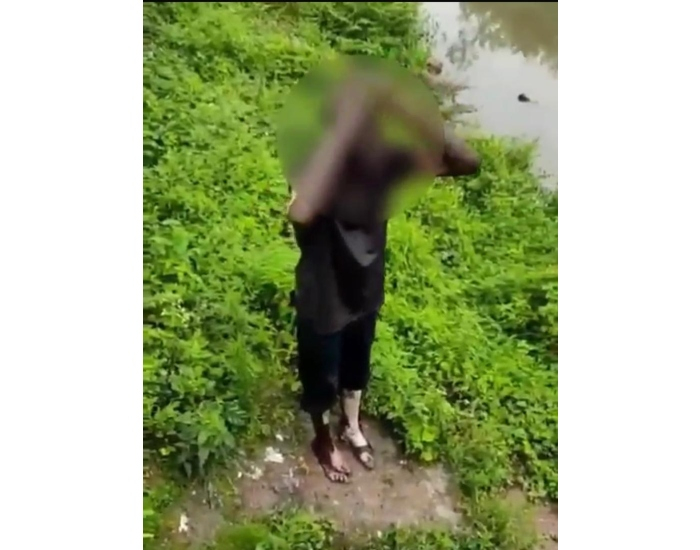 Um vídeo que circula nas redes sociais mostra o homem com o corpo queimado aguardando atendimento.
