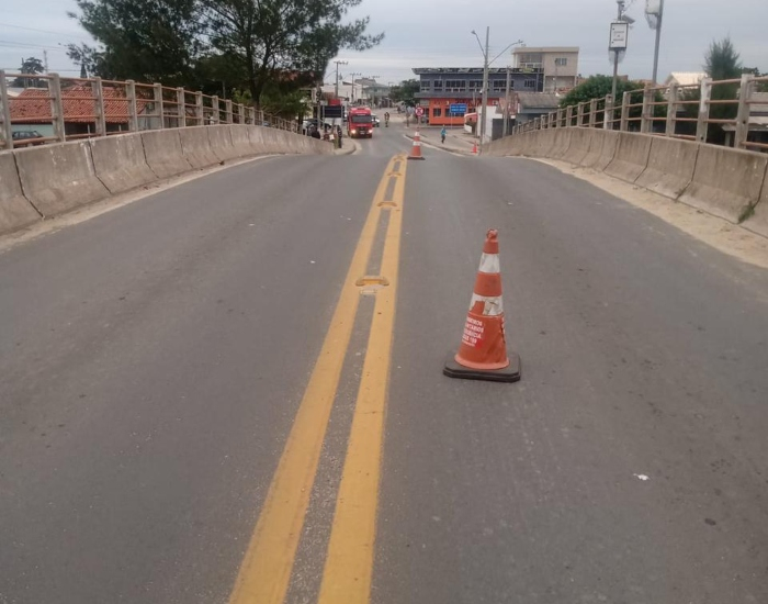 BVJ/Divulgação/Folha Regional Uma forte ressaca provocou danos significativos em uma das cabeceiras da Ponte do Camacho, na SC-100, em Jaguaruna, na madrugada desta quinta-feira, dia 22. Por volta das 3h30, os Bombeiros Voluntários foram acionados para fazer a sinalização e isolamento de uma das pistas.