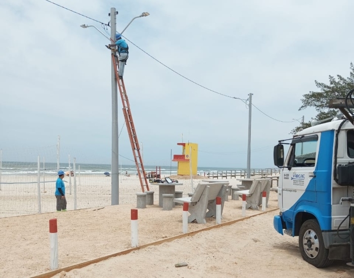 Nesta semana, os voluntários decidiram melhorar o sistema de iluminação das quadras para incentivar a prática esportiva na parte central da praia.