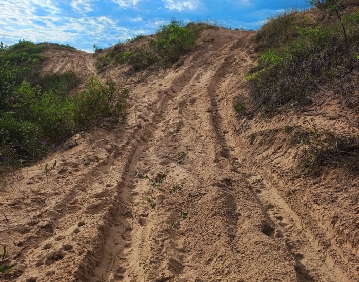 Segundo moradores, a prática ocorre com frequência, quando veículos circulam pelas dunas para trilhas próximo a locais frequentados por veranistas. Festas com bebidas também são feitas no local. Diversas áreas de dunas estão com a vegetação danificada e com rastros dos pneus que passaram pelo trecho.