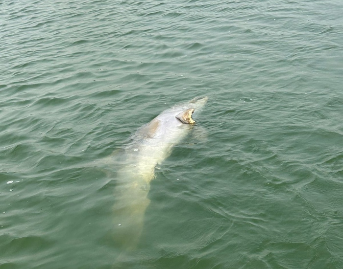 Mais um filhote de boto-pescador foi encontrado morto nesta quarta-feira, dia 11, nos Molhes da Barra, em Laguna. O animal foi visto na saída do bote que faz a travessia do canal por pescadores com sinais de ferimento por rede.