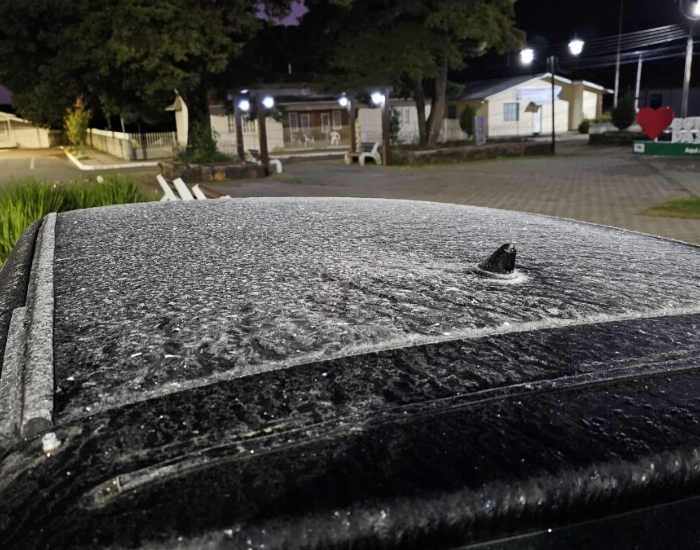Em Bom Jardim da Serra, carros na região central amanheceram “congelados”, cobertos por uma camada de gelo. A cidade registrou 0,64°C, às 6h, na Comunidade XV Dias.