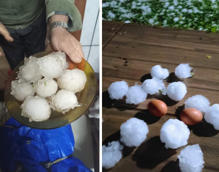 Telhados de casas e galpões ficaram danificados, e ruas foram cobertas pelas 'bolas' de gelo. A Defesa Civil foi acionada para fazer levantamentos dos estragos. O fenômeno ocorreu em pelo menos 15 cidades, conforme levantamento da Defesa Civil, na manhã desta quinta-feira.