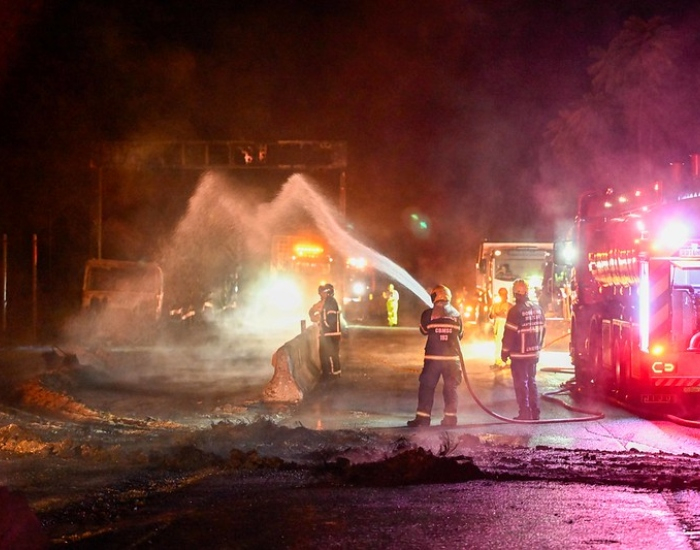Eduardo Valente/Secom/Divulgação/Folha Regional O trecho do Km 233 da BR-101, em Palhoça, foi liberado às 5h09 desta segunda-feira, dia 7. O local estava bloqueado desde as 13h30 de domingo, dia 6, quando uma carreta carregada com combustível tombou e, em seguida, explodiu.