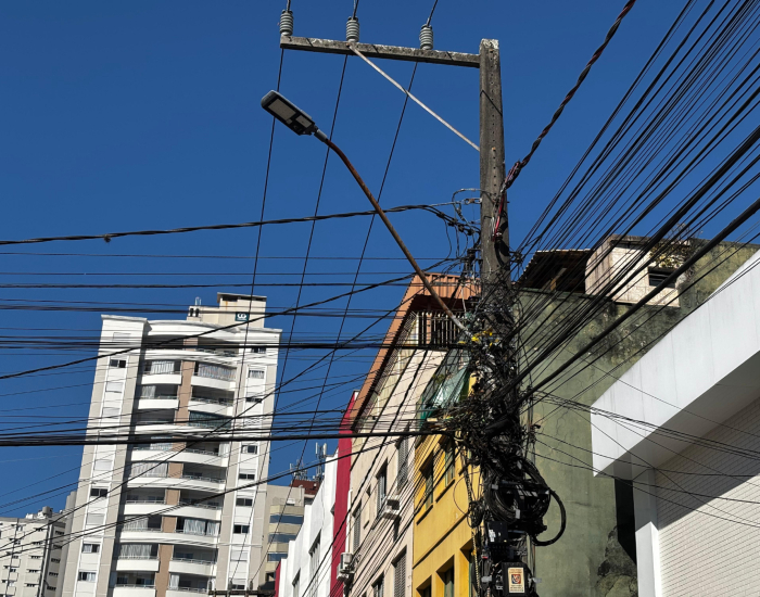 Lysiê Santos/Folha Regional Notícias de Tubarão - Empresas prestadoras de serviços como telefonia, internet e TV a cabo, entre outros, deverão retirar dos postes de energia elétrica os cabos, fios e equipamentos em desuso em Tubarão.