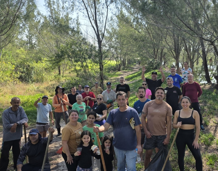 Divulgação/Folha Regional Cerca de 40 voluntários se uniram em um mutirão para revitalização da trilha de acesso à Barra do Camacho, em Jaguaruna. Moradores e veranistas criaram neste ano a Associação Amigos do Balneário Camacho (AABC) e estão executando uma série de ações para melhorar os espaços públicos do local.