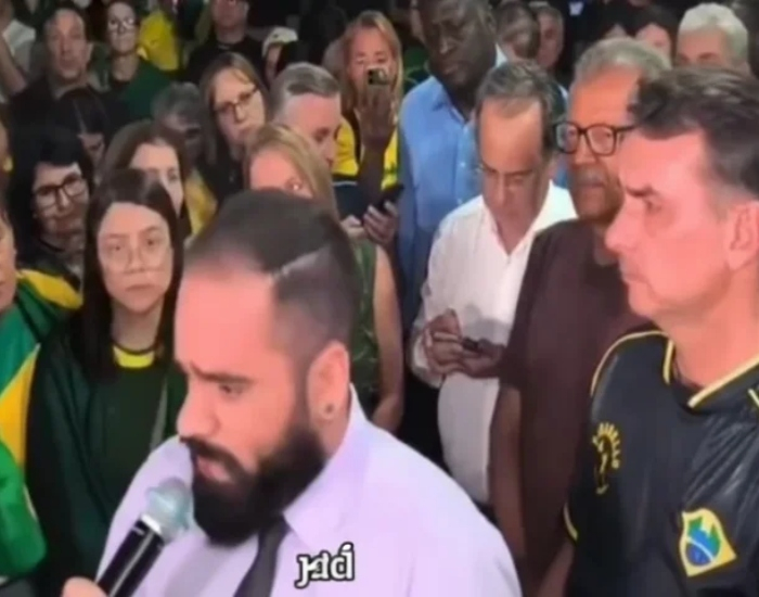 Ismael Lopes, de 34 anos, pediu para discursar e foi chamado por Flávio Bolsonaro por volta das 20h15. Ao lado de Flávio, Lopes leu uma passagem bíblica dizendo que “quem cava covas por elas será engolido”. Em seguida, pediu para que Bolsonaro fosse condenado por ações durante a pandemia de Covid-19.