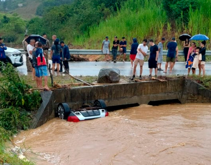 Segundo a PM, o veículo foi levado para um rio ao passar em uma área alagada