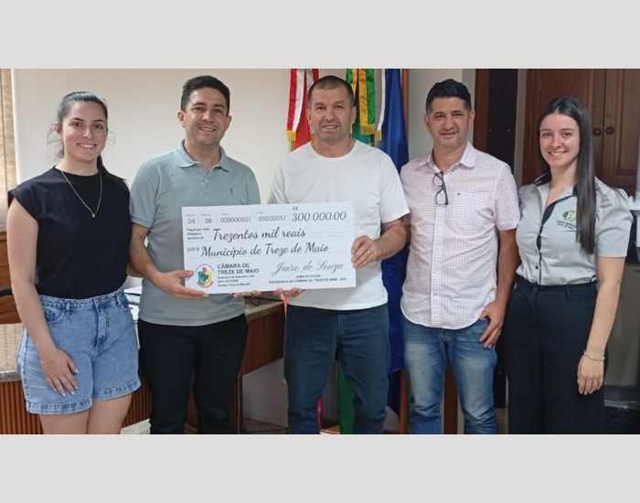 Divulgação/Folha Regional A Câmara de Vereadores de Treze de Maio realizou a devolução de R$ 300 mil à prefeitura. O valor se refere à economia obtida ao longo do ano pelo Poder Legislativo.