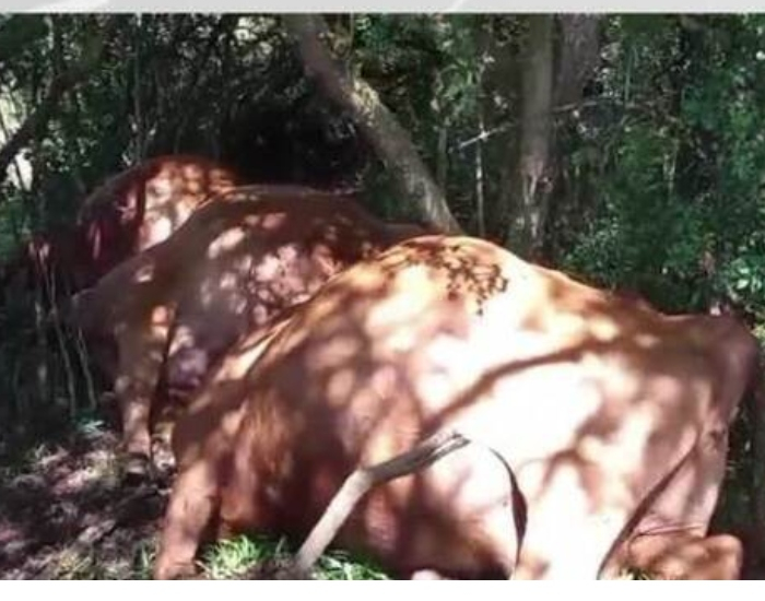 Segundo a prefeitura, as descargas elétricas atingiram o rebanho durante as chuvas. Morreram 14 vacas e 12 bezerros jovens, que estavam no mesmo espaço.