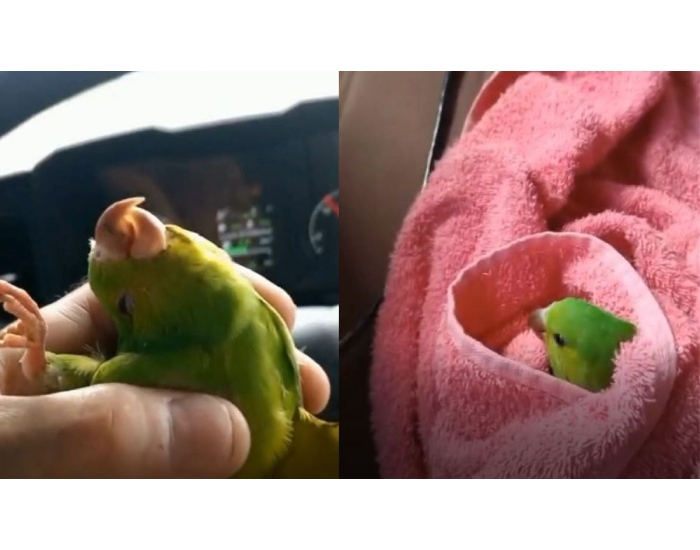 No vídeo, o motorista relata que trafegava pela rodovia quando ouviu um barulho repentino. Logo depois, percebeu que um periquito havia caído dentro do veículo, já desacordado.
