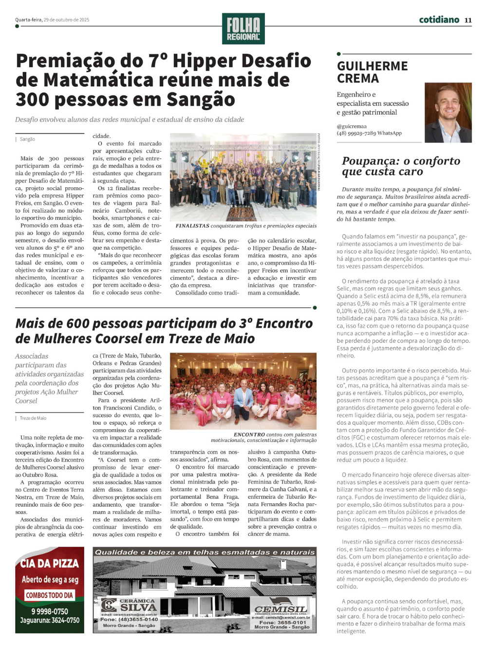 Avenida Marcolino Martins Cabral, 926, sala 1006, Centro | Edifício EJB | Tubarão (SC) | WhatsApp (48) 9 9219-5772