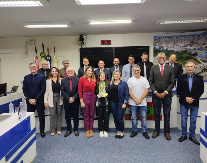 A atleta de Tubarão, Juliana Rosa Gomes, de 13 anos, foi homenageada na Câmara de Vereadores de Tubarão na noite desta segunda-feira, dia 5.