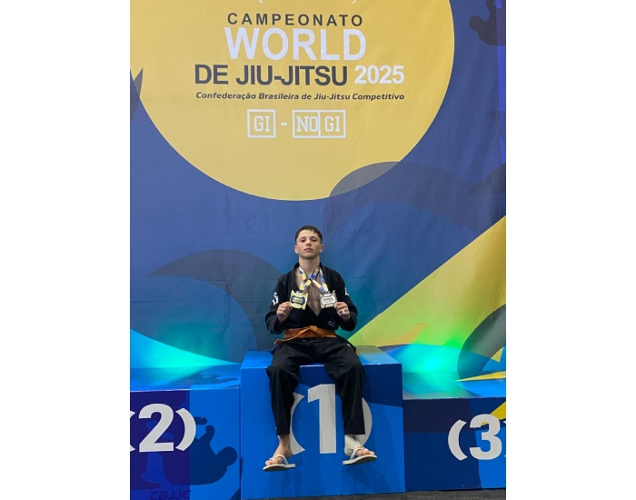 Ele foi campeão no Campeonato World de Jiu-Jitsu nas modalidades Gi (com kimono) e No Gi (sem kimono), realizado pela Confederação Brasileira de Jiu-Jitsu em Balneário Camboriú no último fim de semana.