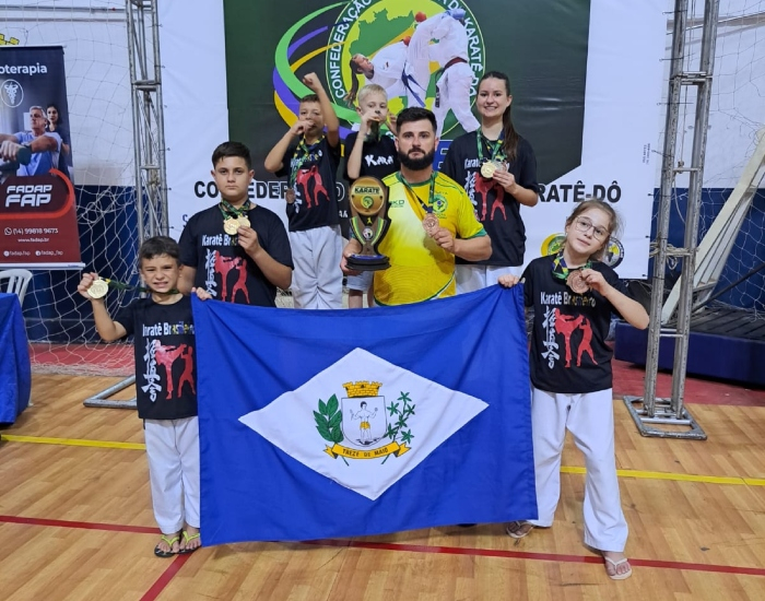 Divulgação/Folha Regional Os atletas de Treze de Maio representaram o município no Campeonato Brasileiro de Karatê, em Tupã, em São Paulo, neste domingo, dia 17. Cerca de 200 atletas de todo o Brasil participaram da competição classificatória para o mundial em 2024. Seis atletas de Treze de Maio representaram o grupo e conquistaram medalhas de ouro, prata e bronze.