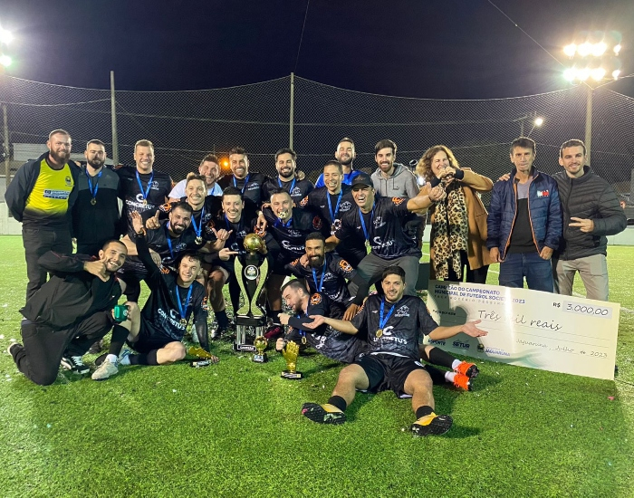 Divulgação/Folha Regional O Campeonato Municipal de Futebol Society - Taça Rogério Pereira, em Jaguaruna, terminou com a equipe de Los Jaguares (Arroz Marcon/Concretus) sagrando-se campeã ao vencer a equipe do Poços por 6 a 0 na partida decisiva. O evento ocorreu no último sábado, dia 29, no Campo Valmir Cabral da Silva, no Ginásio de Esportes.