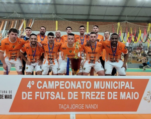 PMTM/Divulgação/Folha Regional A equipe Magus Auxiliadora foi a grande campeão do 4º Campeonato de Futsal de Treze de Maio – Taça Jorge Nandi. A competição ocorreu no Complexo Esportivo Irineu Bornhausen com a presença do público que lotou as arquibancadas na última sexta-feira, dia 21.