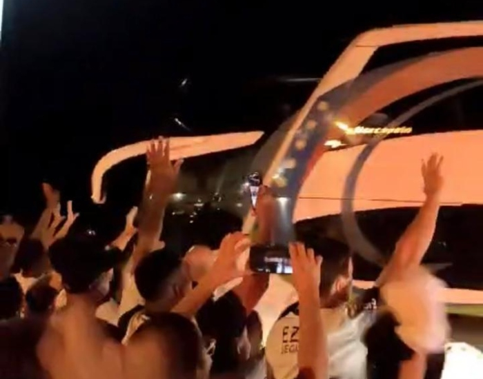 Durante a espera, os torcedores cantaram o hino do time e permaneceram no local até a chegada dos jogadores, que passaram de ônibus sem fazer contato com o público.