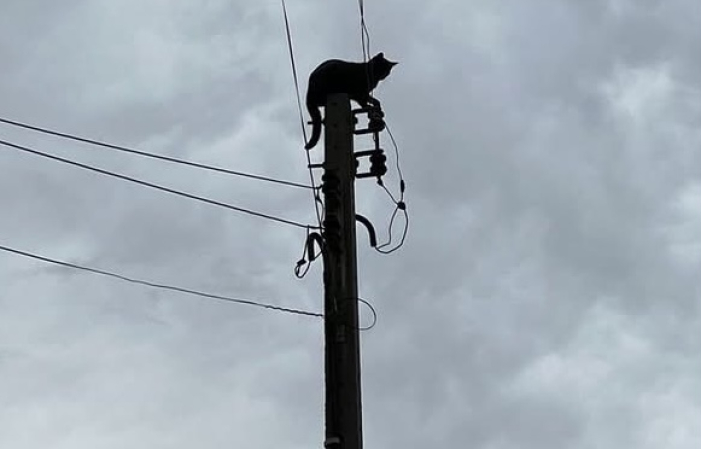 Ao chegar no local, a guarnição foi constatou que um gato encontrava-se no alto de um poste. Segundo relato da tutora, o felino teria sido perseguido por cães de rua e buscou refúgio ao subir no local.